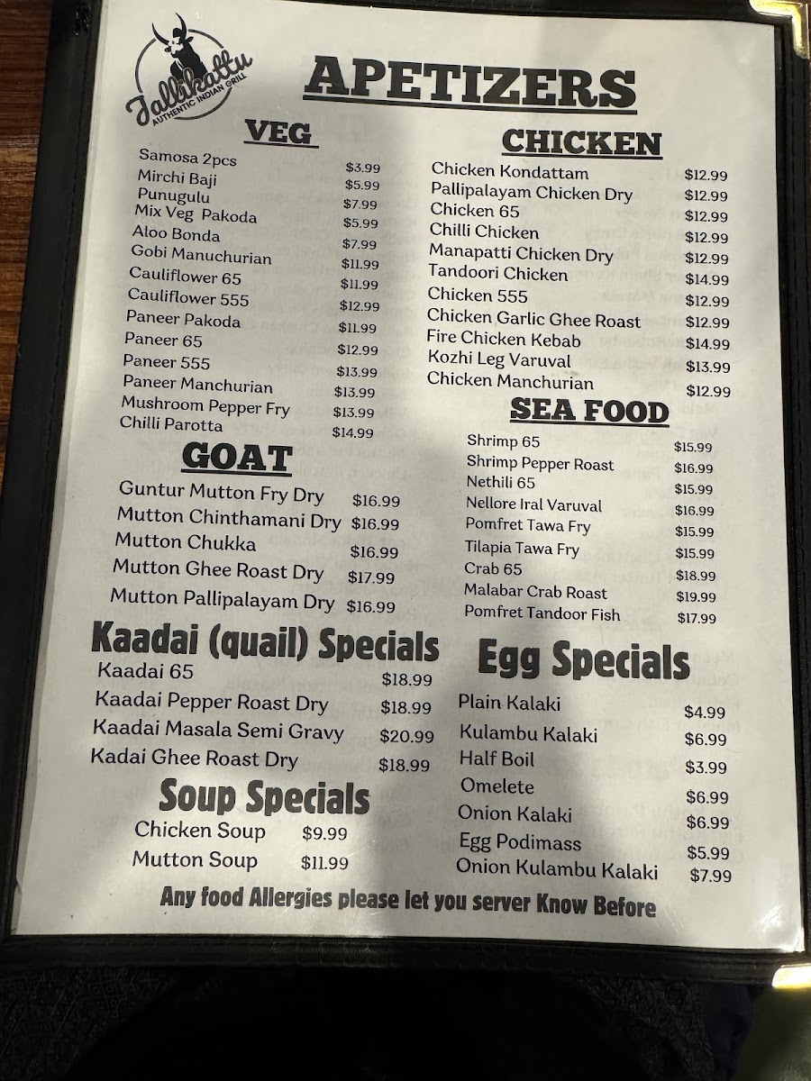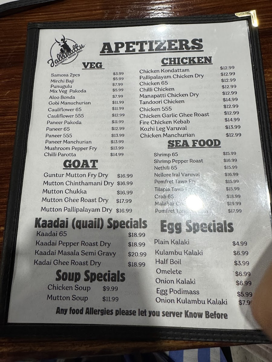 Introducing the Menu of Jallikattu Authentic Indian Grill